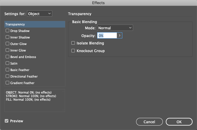 3. Set "Opacity" to "0%". This will make the hotspot invisible.