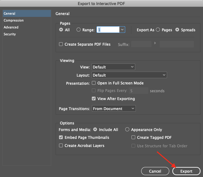 Export PDF from InDesign