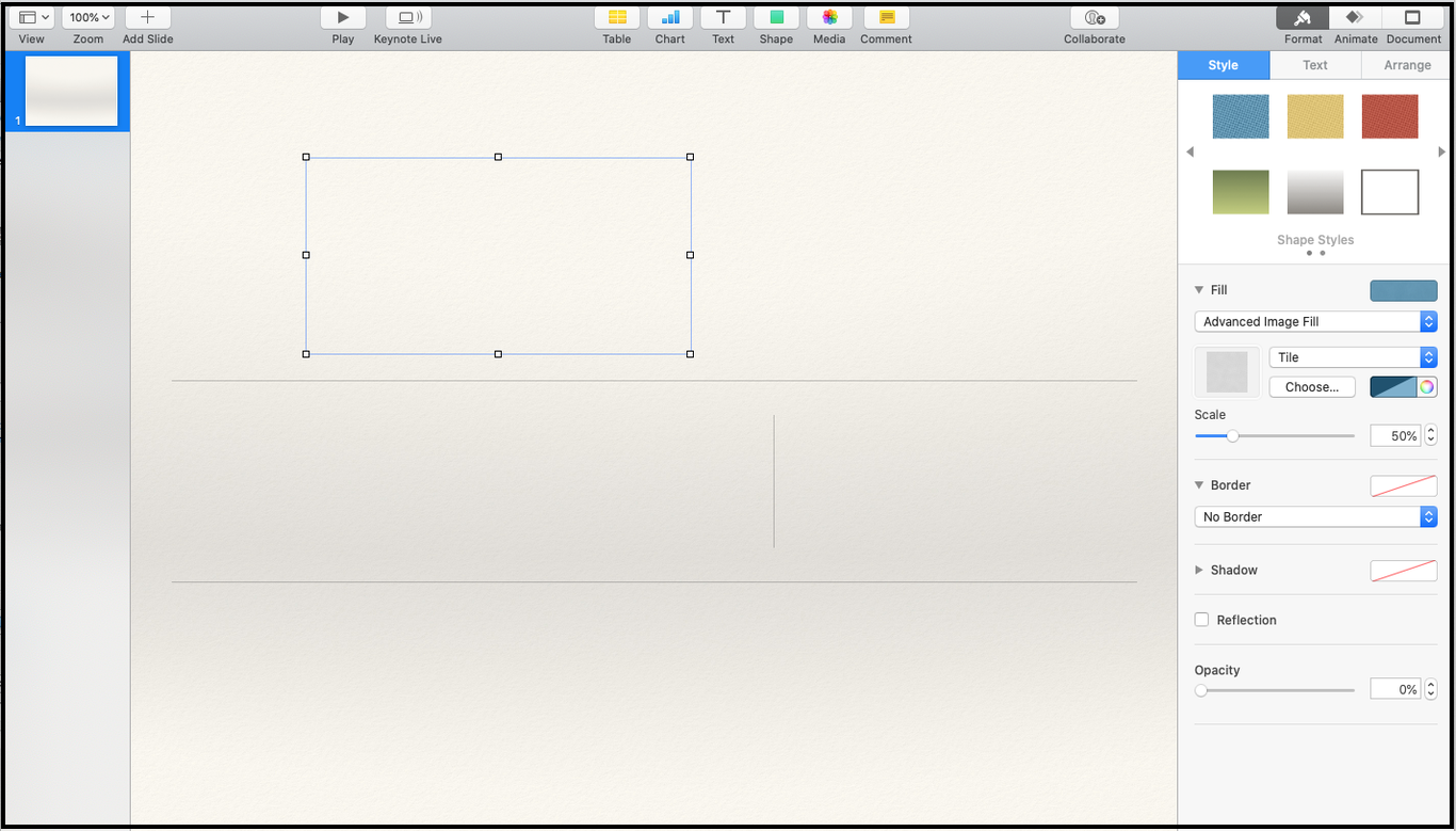 2. Set "Opacity" of "Fill" to 0% and select "No Border". As a result your rectangle will become invisible on the slide.