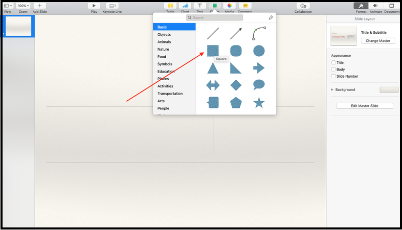1. Open the presentation and select a rectangle shape. This shape will be your hotspot. Place the rectangle on the area you want to hyperlink.