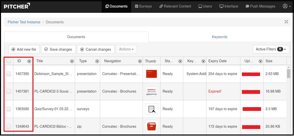 2. Check the FileID in Pitcher Admin of the file you want to link to (this file has to already be uploaded on Pitcher Admin)