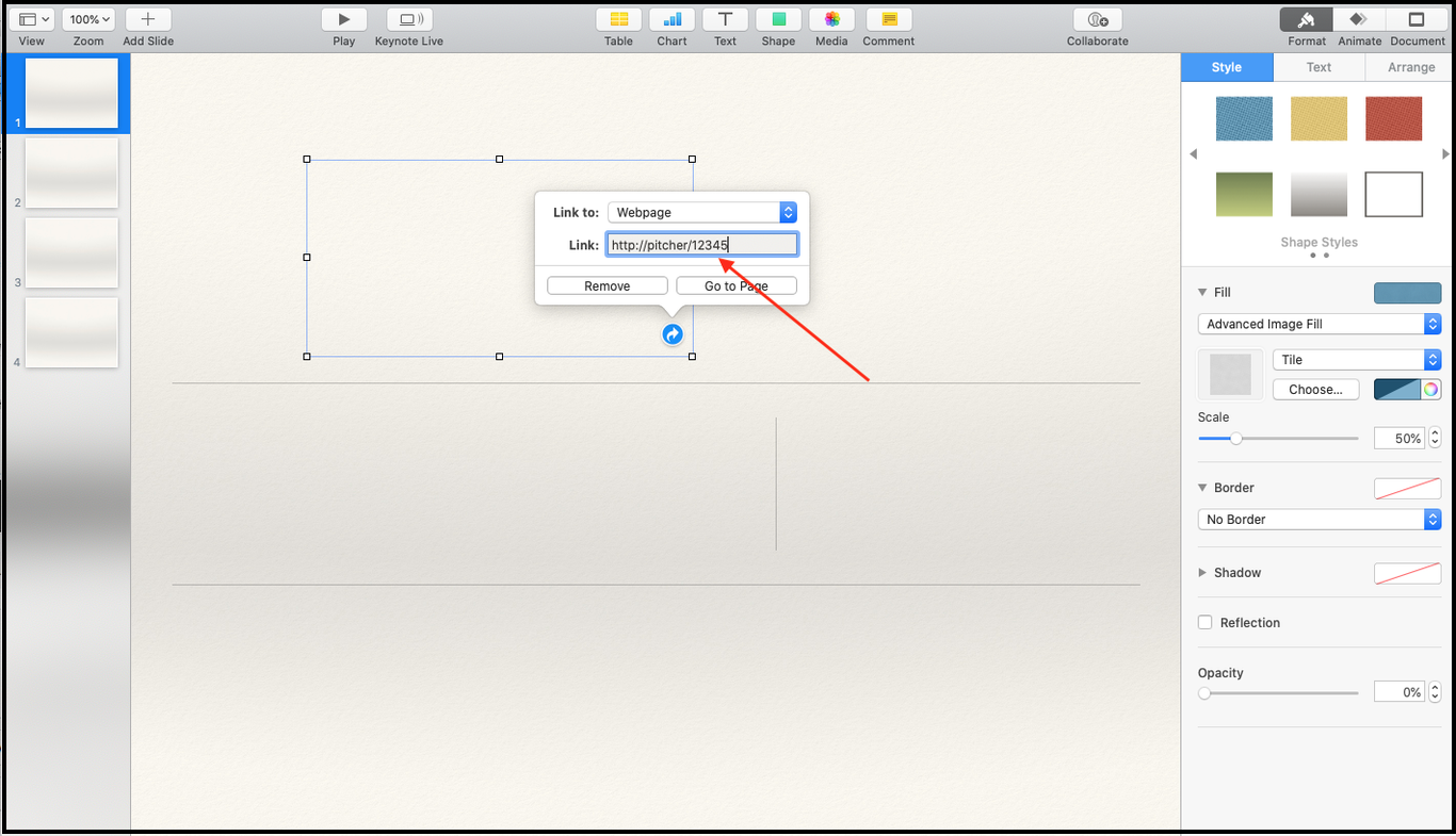 This page gives a walkthrough on how to add hotspots in a Keynote presentation. The Pitcher conversion engine accepts hyperlinks directly from Keynote so you can create and copy/paste your hotspots easily within your original presentation.