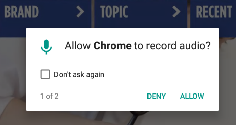 When the sales representatives initially enter a waiting room, they will be prompted to enable their camera and mic for use during a call. Please be sure to select Allow. If Block once is selected, Google will no longer ask again unless the user reset his/her site settings. Android Operating System will also ask permission for Chrome to access the Camera & Microphone. Please accept all 3 permissions.