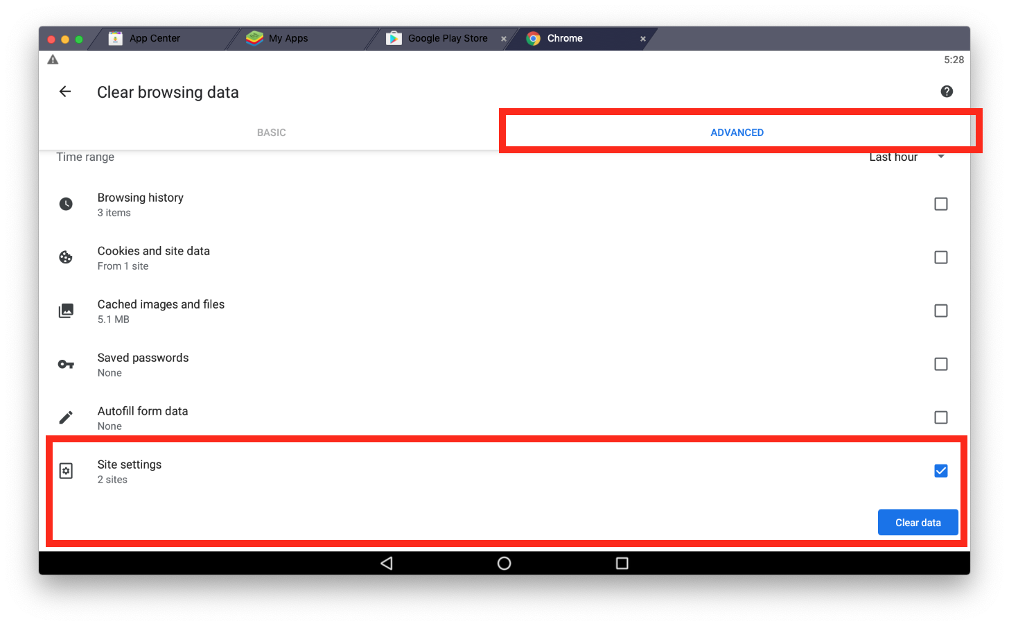 Click Clear Data and restart Chrome