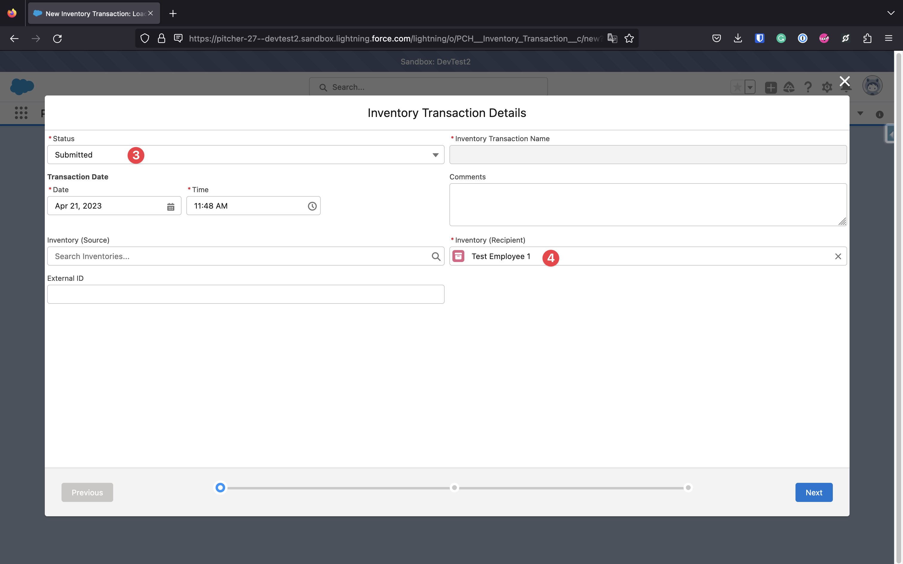 Select the required sales rep’s inventory as the Recipient and hit Next.