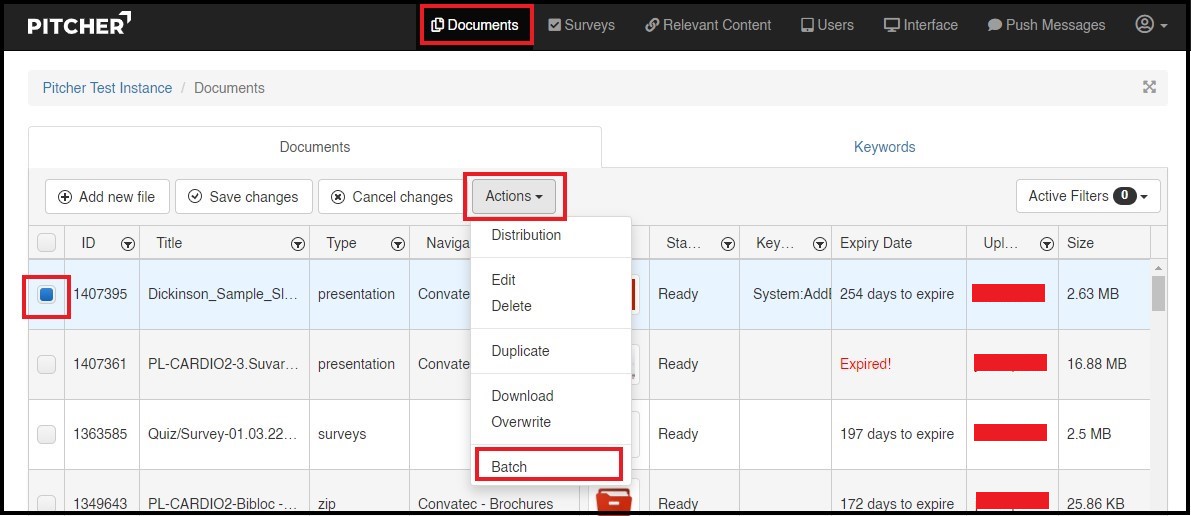 This page gives an overview about the Batch Functionality for the document(s) in Pitcher Admin. "Batch" allows you to edit/add "tags" and "keywords" to a Presentation. The purpose of this is to create keywords for individual slides so that they can be searched for on your device. This is extremely helpful to find the exact slide you are looking for among many presentations.