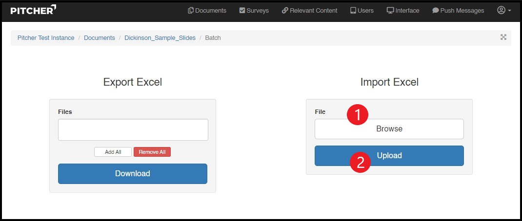 Once the Slide Tags & Keywords are updated the excel sheet can be uploaded back into the instance. Follow these steps to upload the excel document: