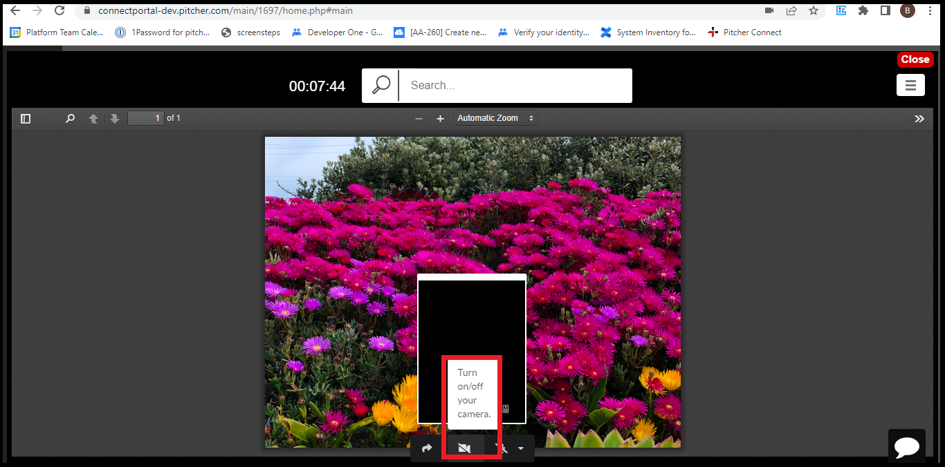 To turn off camera while using Pitcher Connect, simply click on controls icon and then camera on/off button.