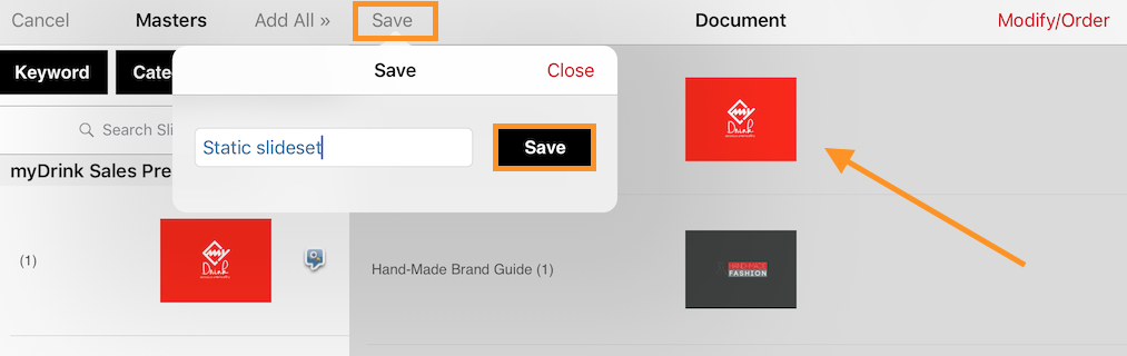 Tap "Save" and give the slideset a title. (Tap Save again).