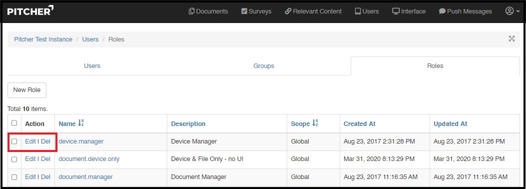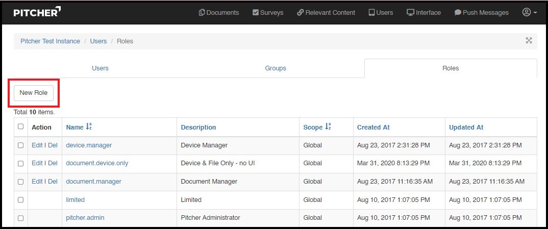 This page gives a walkthrough on how to create and manage admin roles in Pitcher Admin. You can create, edit or delete an admin role from Pitcher Web Admin in an instance.