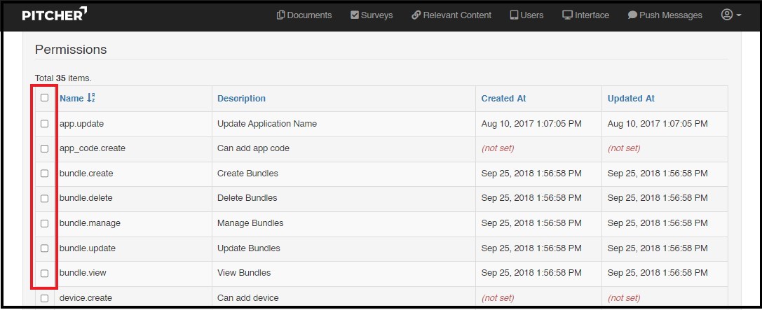 survey.manage - It allows the user to manage the surveys published in Pitcher Admin.
