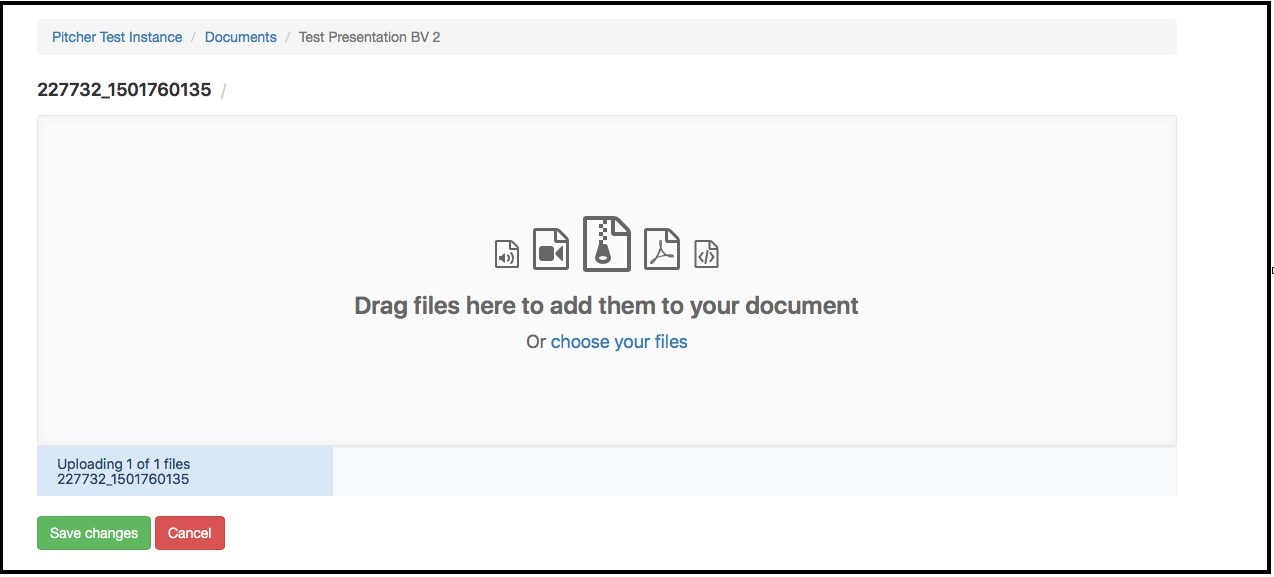 4. The window below will appear. You can re-upload the folder here directly. It will replace the existing folder and the changes you made to the HTML of the slides will be implemented to the presentation after clicking "Save Changes".