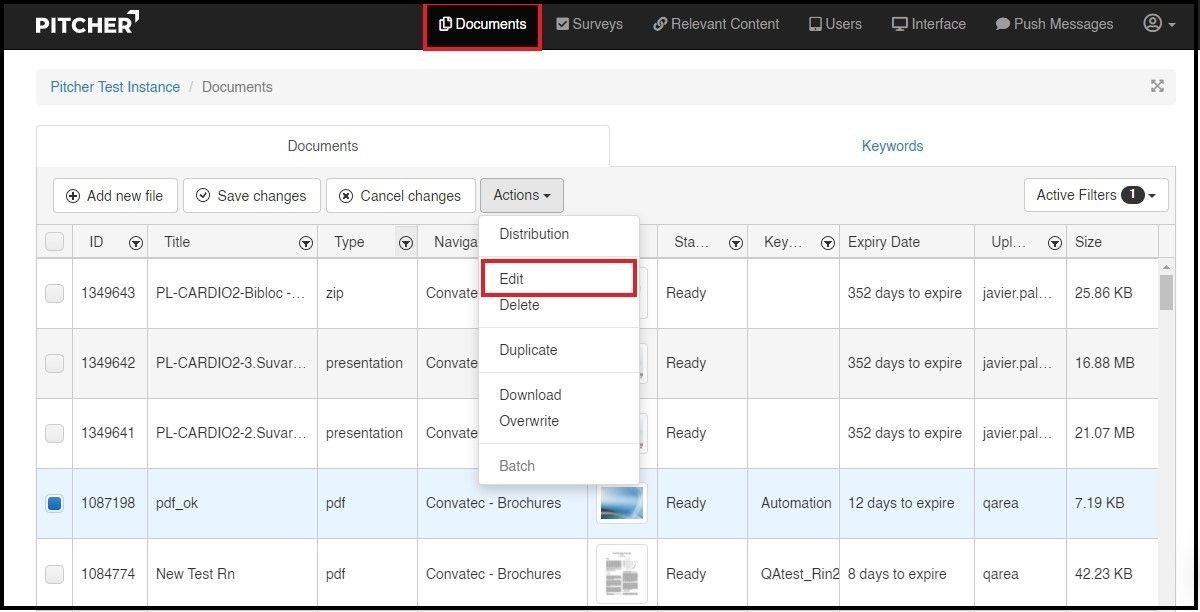 1. Select a presentation and click on “Edit" button from Actions dropdown.