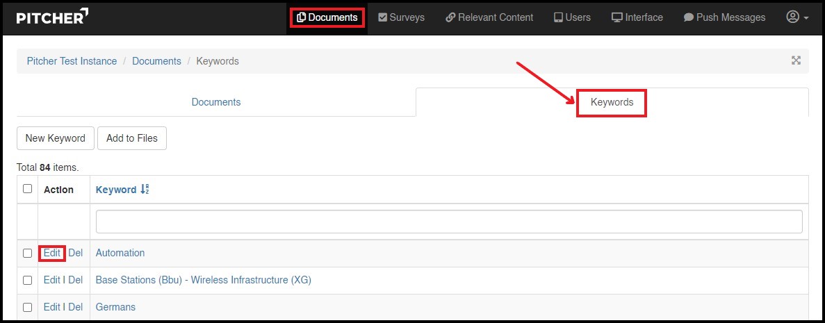 This page gives knowledge about editing keywords in Pitcher Admin. You can easily edit keywords to your content with the Keywords Manager.
