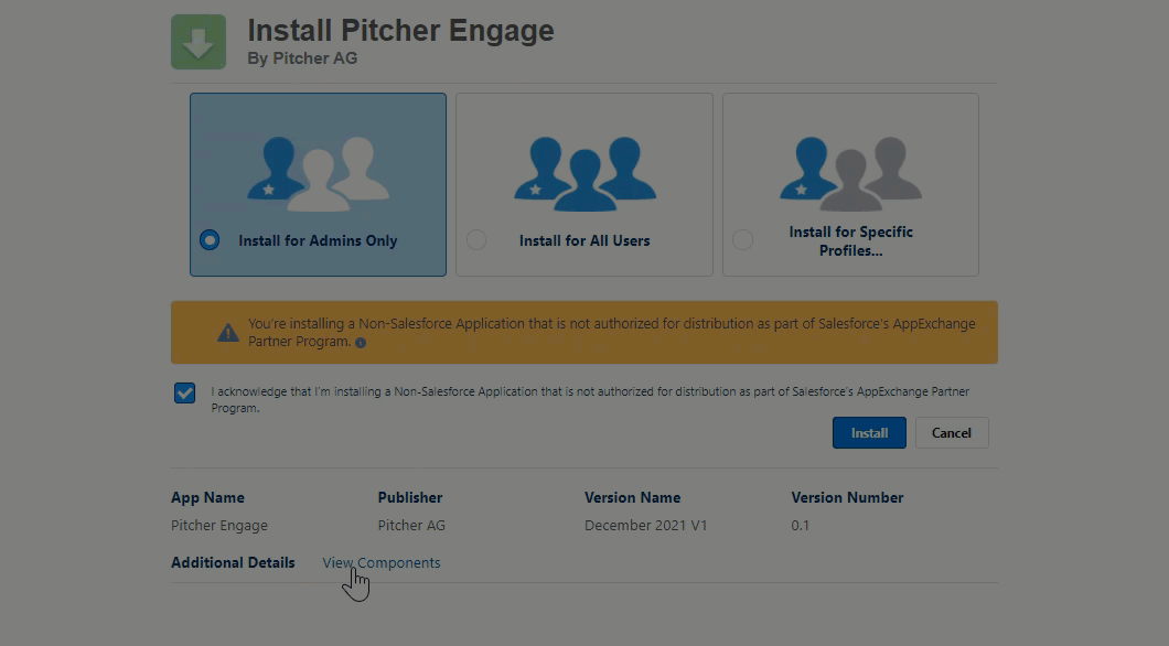 Pitcher Engage Managed Package installs the following custom metadata objects listed below: