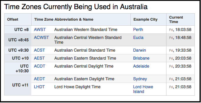 Offset for Sydney, Australia: UTC+11