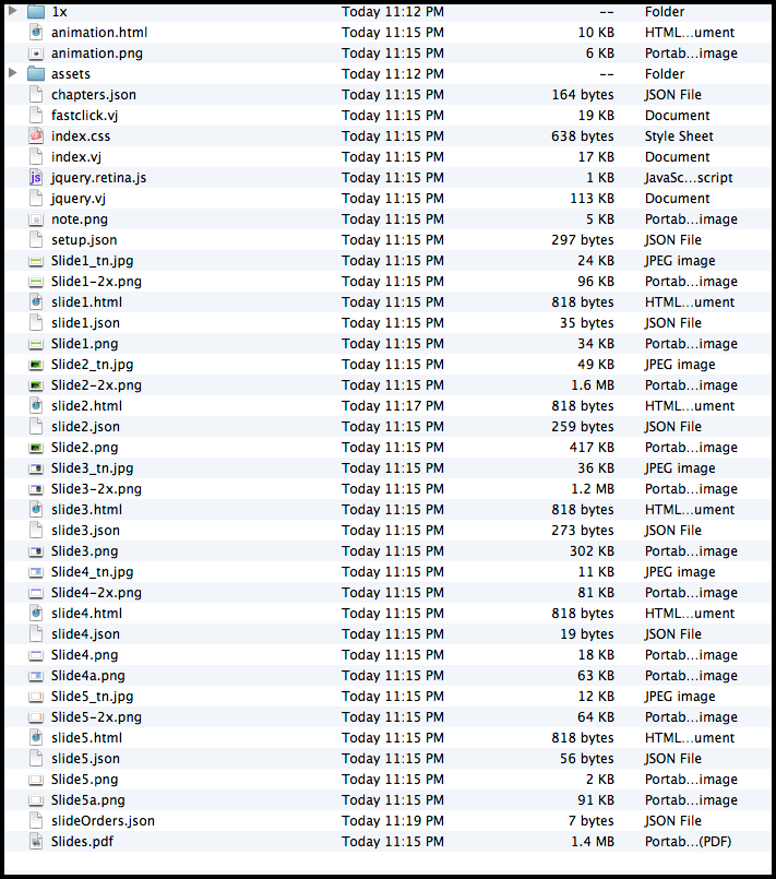 After Presentation Conversion, a typical Pitcher folder looks like the following: