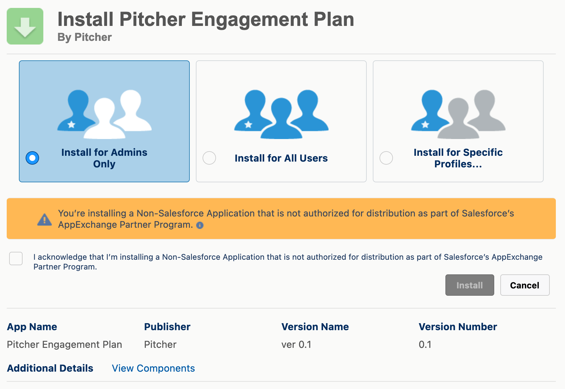 Check the acknowledgement and click Install to proceed.