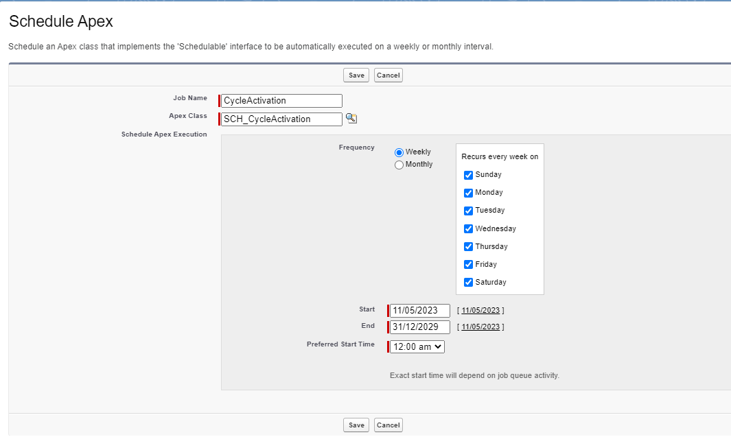 To schedule the nightly batch job BAT_CycleActivationBatch