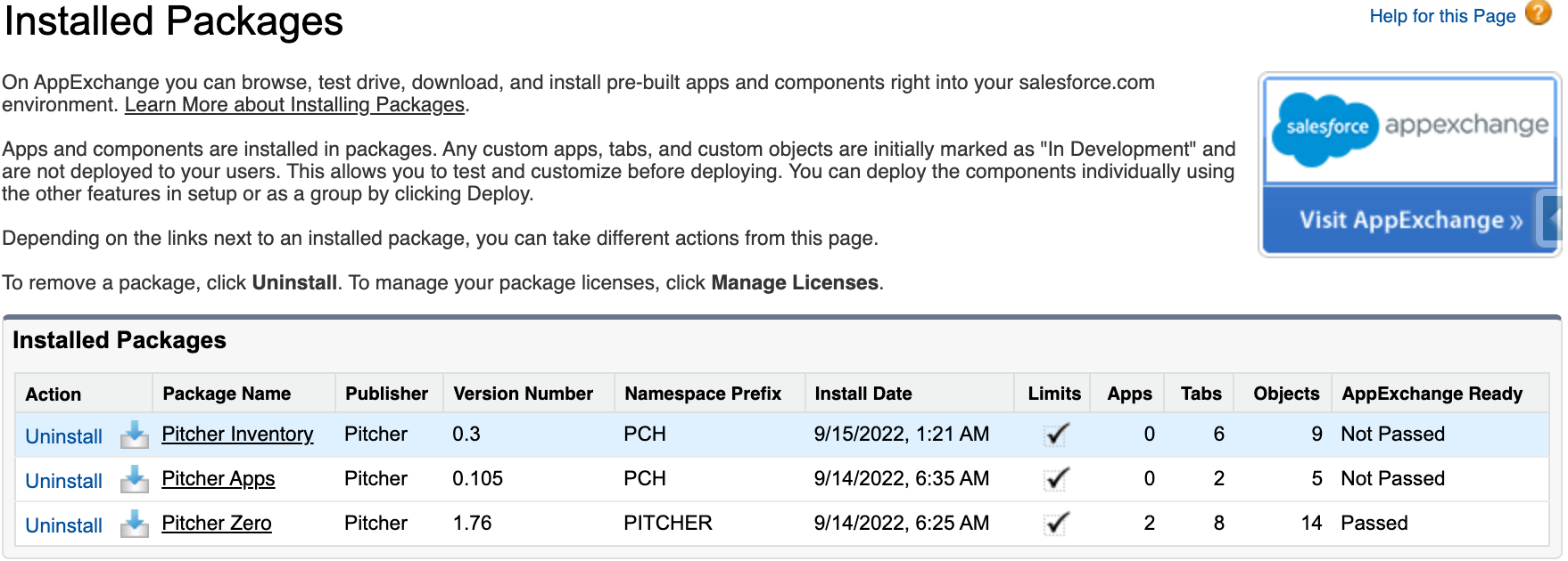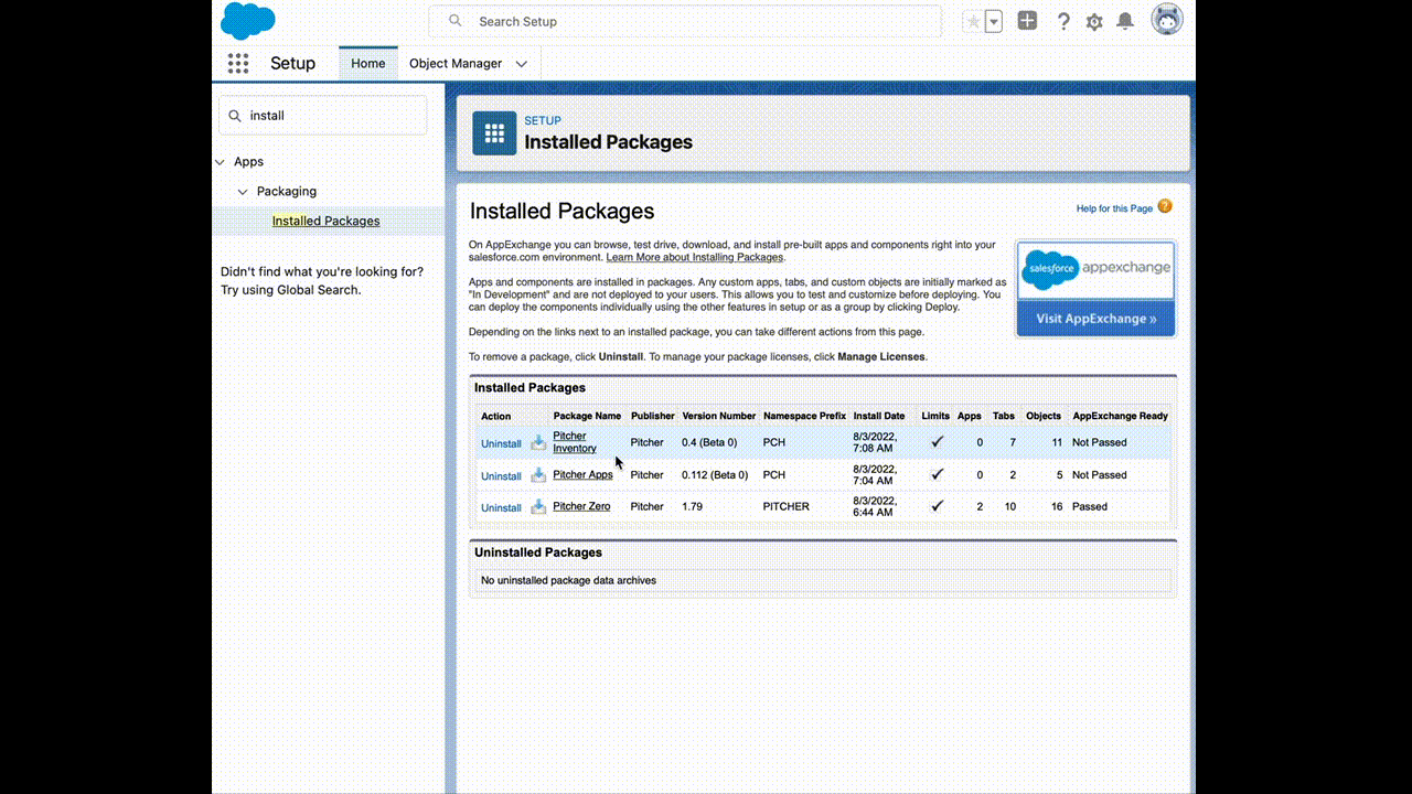 Pitcher Zero- Install the dependent or higher version by referring to this https://pitcher-ag.atlassian.net/wiki/spaces/PDOC/pages/301400076/Inventory+Samples+2.0+Managed+Package+Details#Version-Control section.Pitcher Apps- Install the dependent or higher version by referring to this https://pitcher-ag.atlassian.net/wiki/spaces/PDOC/pages/301400076/Inventory+Samples+2.0+Managed+Package+Details#Version-Control section.
