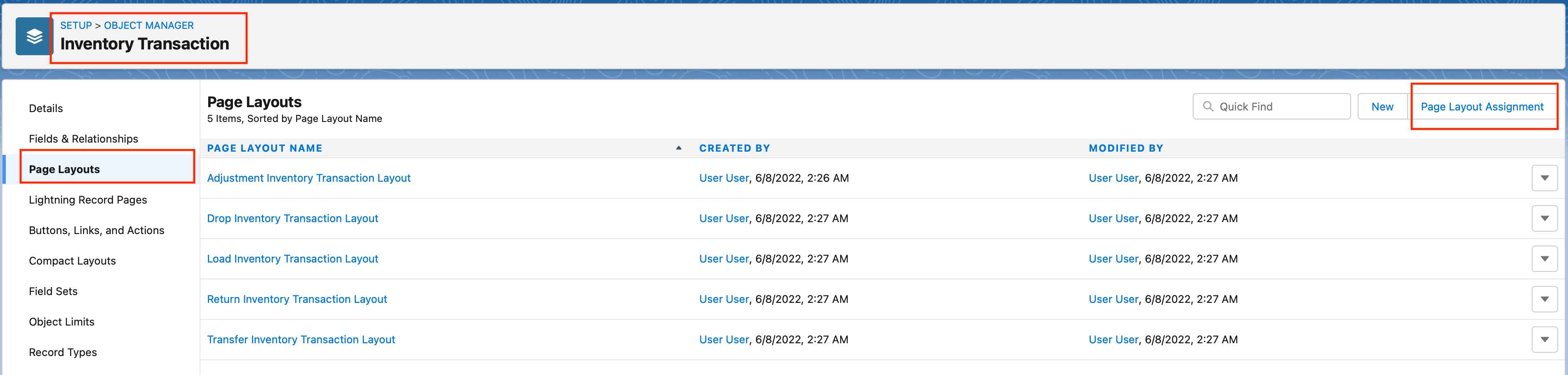 Setup → Object Manager → “Inventory Transaction” Object → Page Layouts