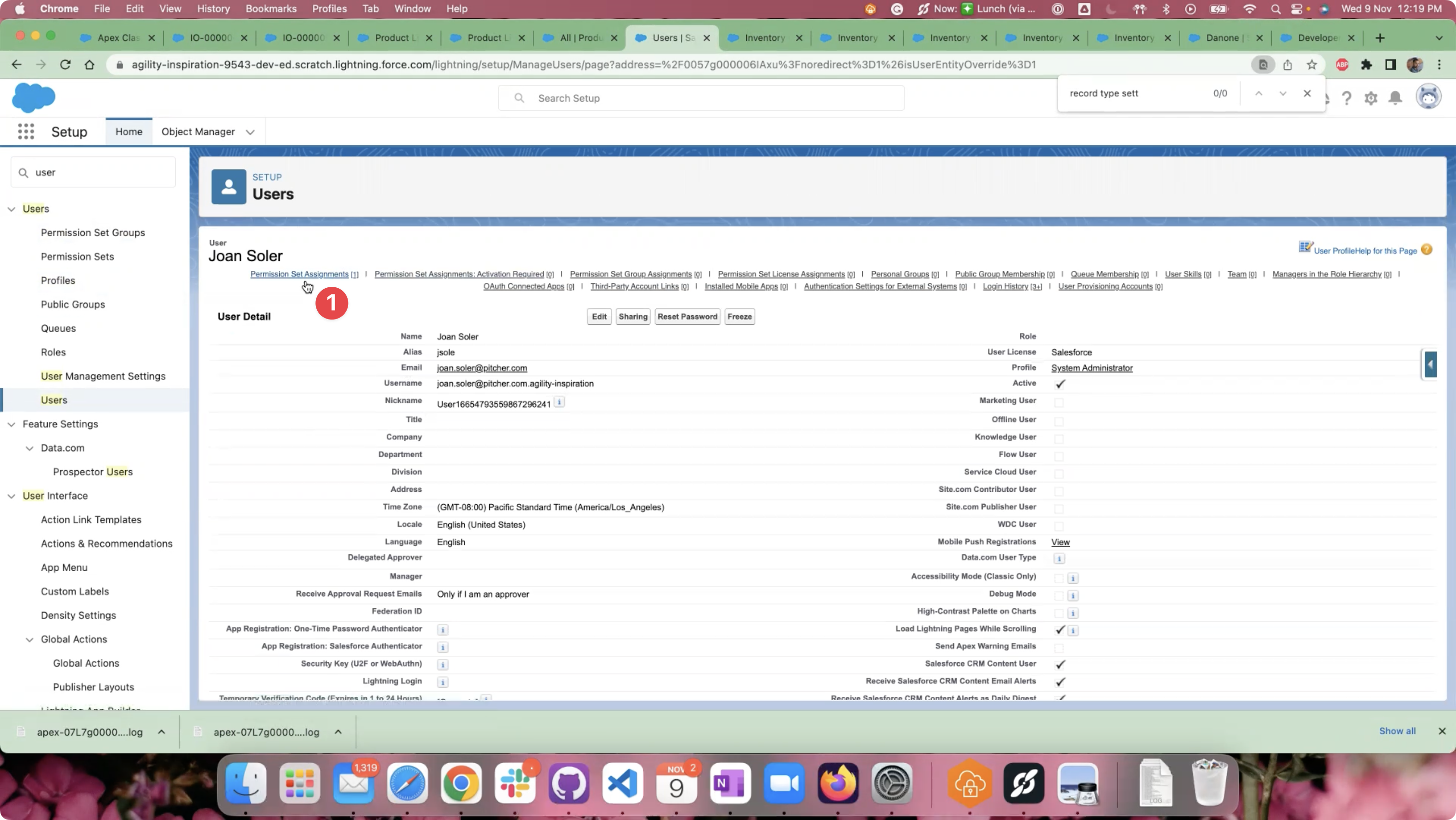 Select the required User and click on the “Permission Set Assignments” related link or scroll down to the “Permission Set Assignments” section.