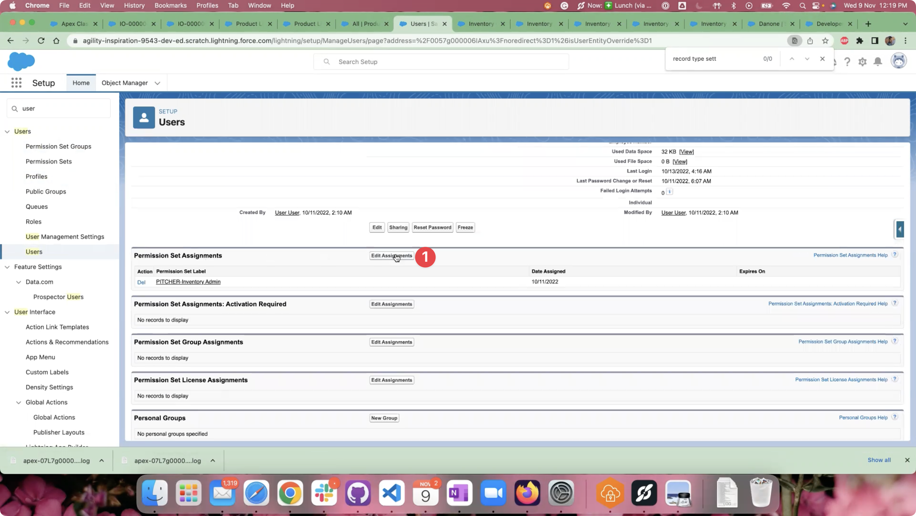 Click on the “Edit Assignments” link in the “Permission Set Assignments” section.