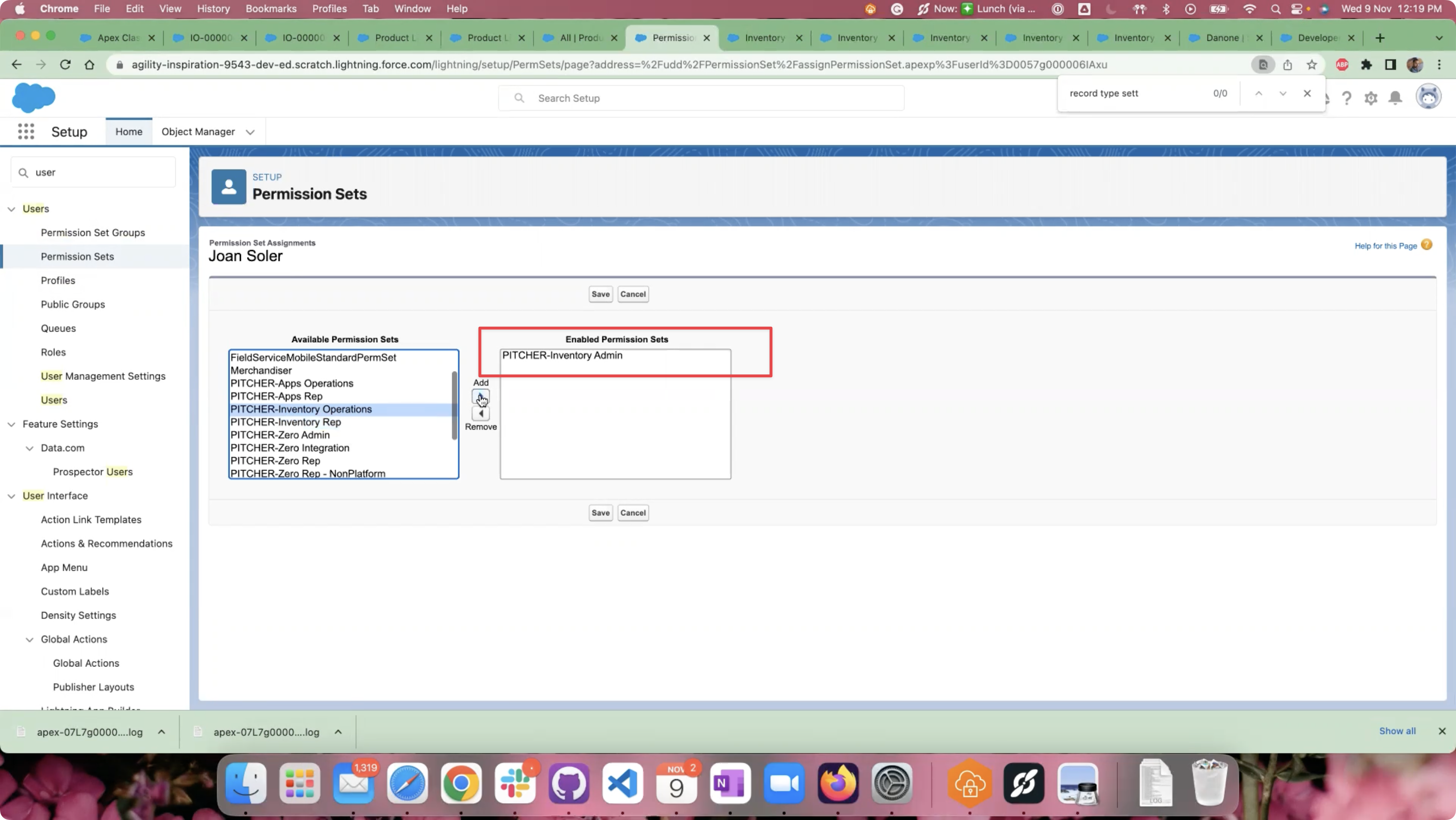 Assign one of the required Inventory Permission Set to the user and click “Save”.