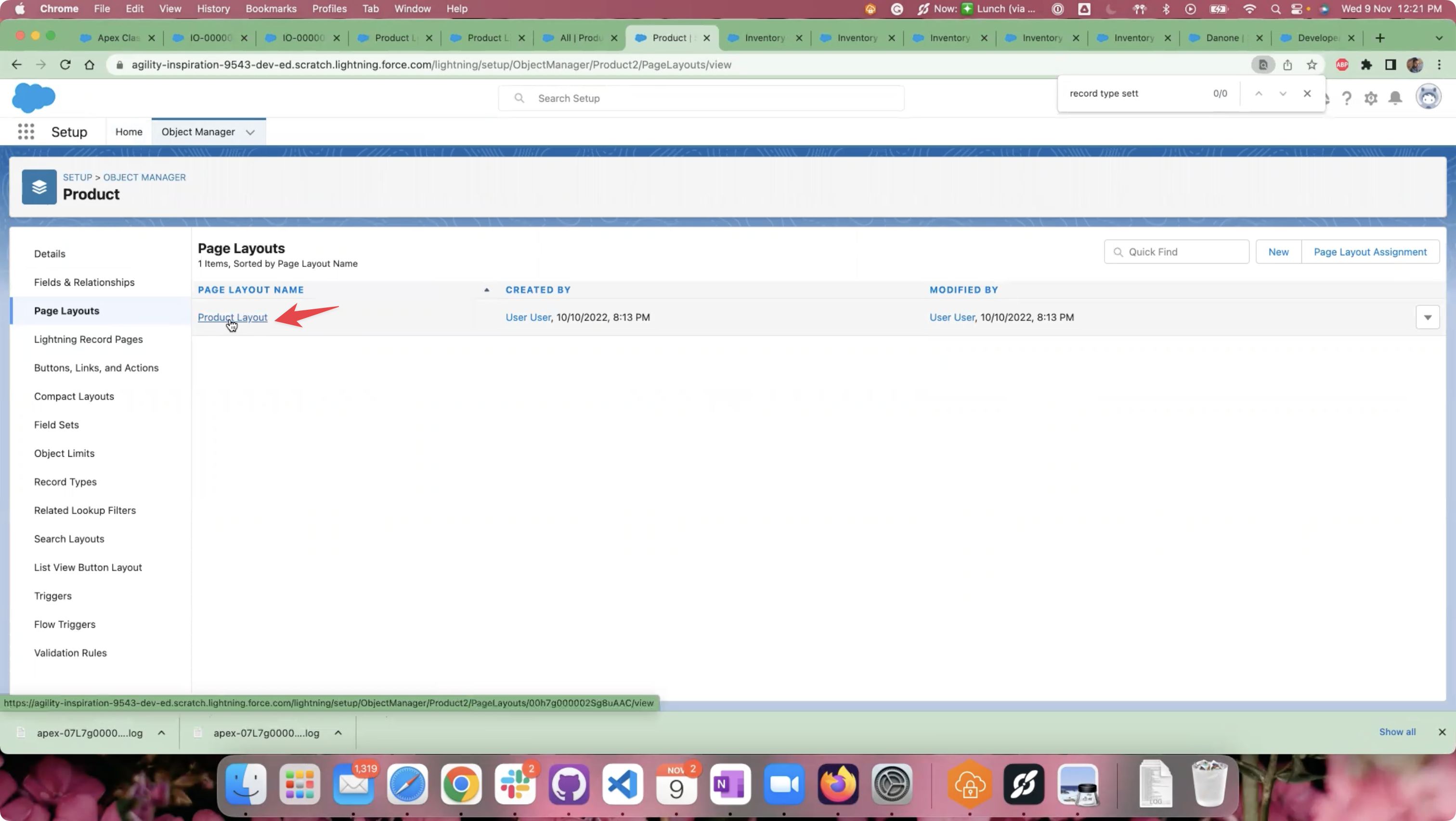 Navigate to the “Page Layouts” section on the object page.