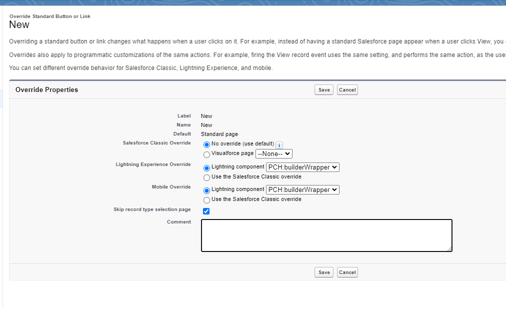 On next screen make sure that “Skip record type selection page” checkbox is CHECKED. Click Save.