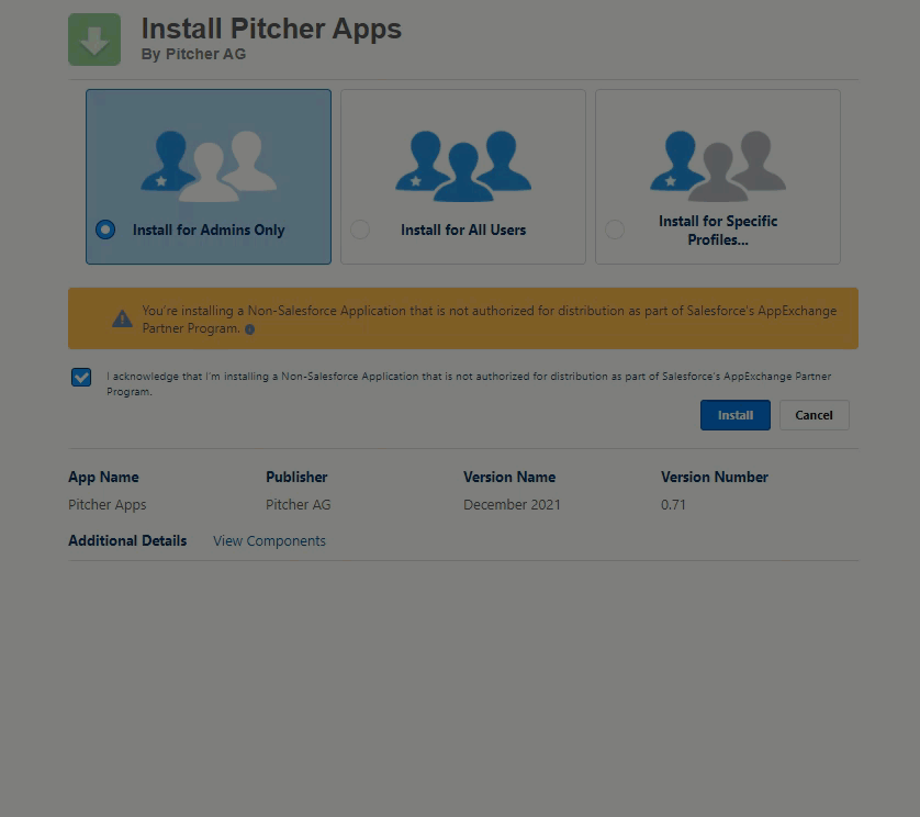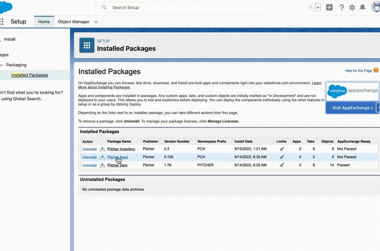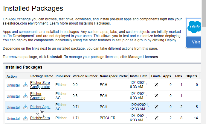 After the Pitcher Apps Managed Package gets installed in the org, you need to perform the following steps: