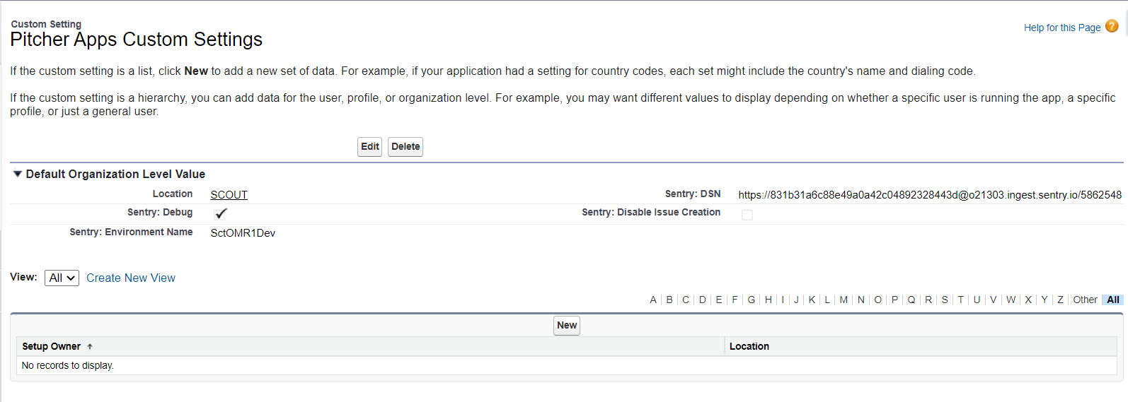 Search → Pitcher Apps Custom Settings (PCH__Apps_Custom_Settings__c)