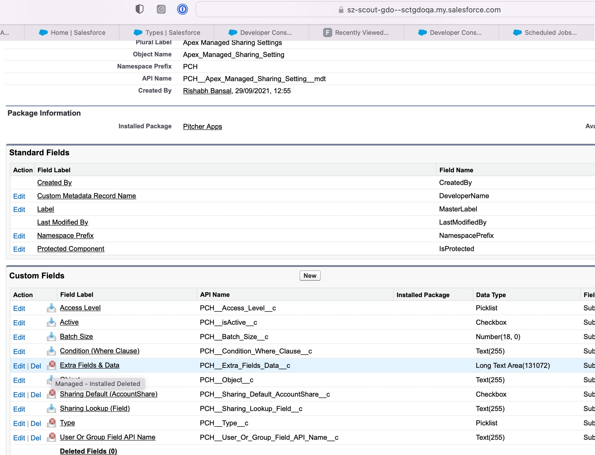 Now click delete (as per the screenshot below) for the below fields, which are deleted from the package but still available in the subscriber org -
