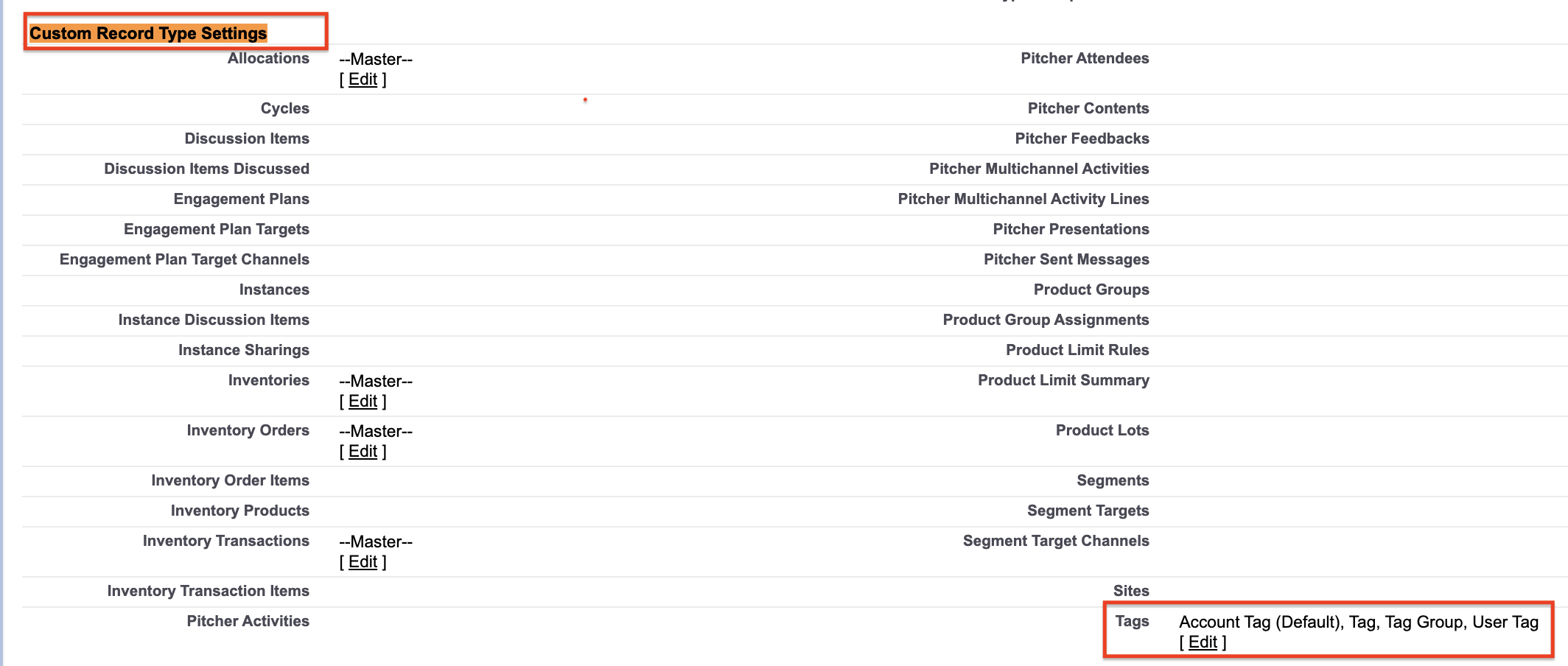 Click “Edit” on Tags and ensure that all record types are selected and save