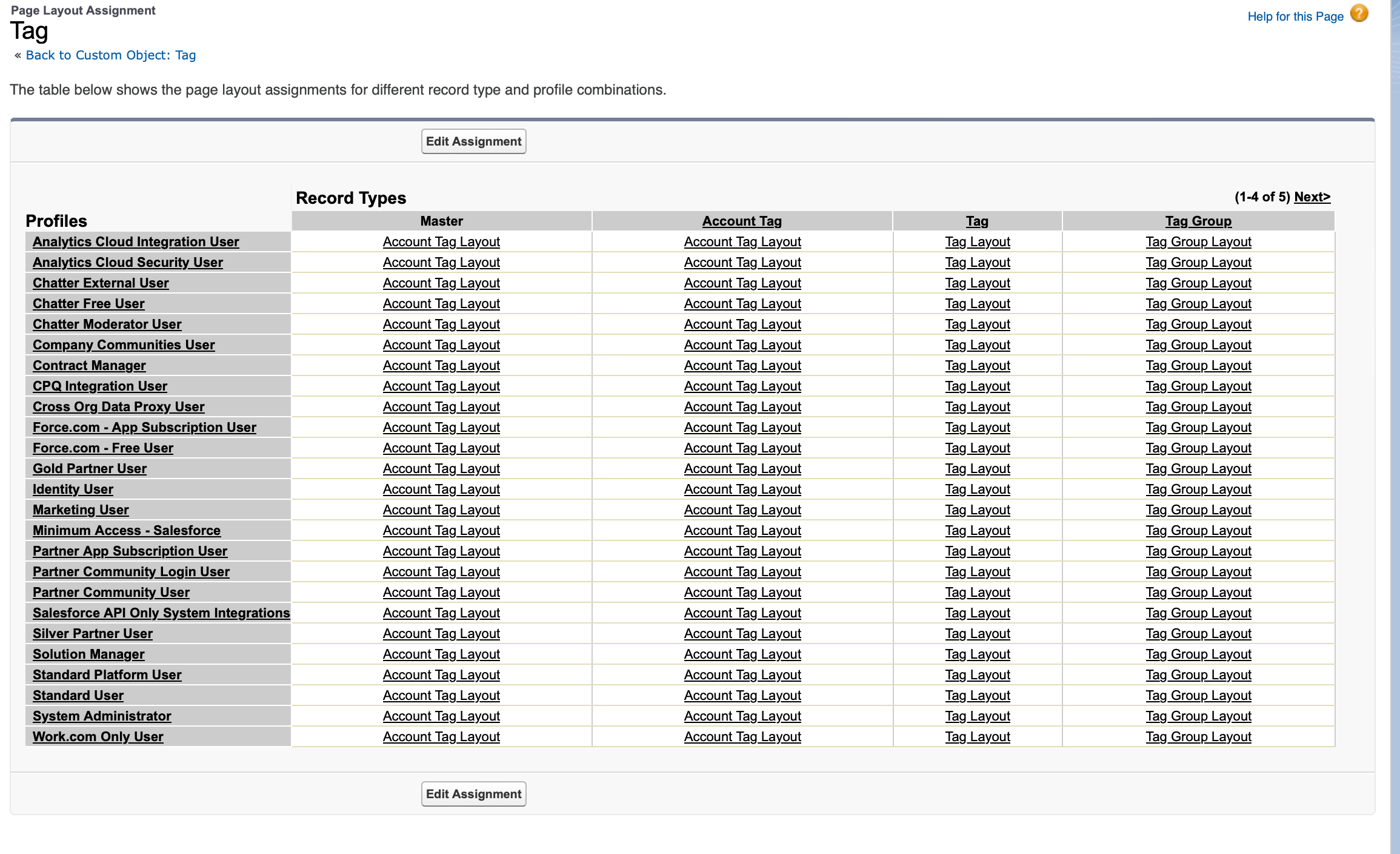 Click on “Page Layout Assignments” → “Edit Assignments” and select the assignments as below -