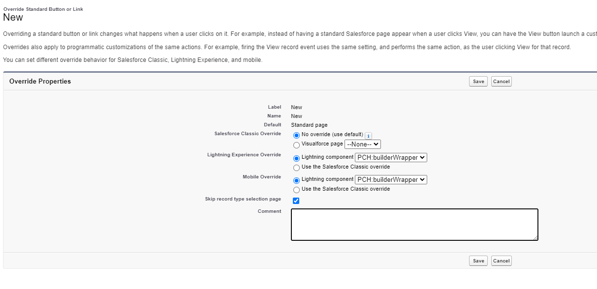 Search → Lightning Builder (PCH__Lightning_Builder__mdt)