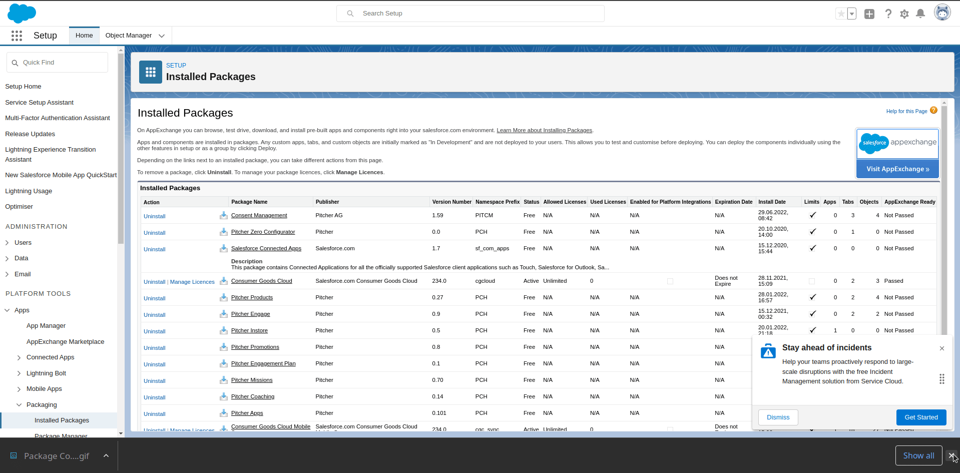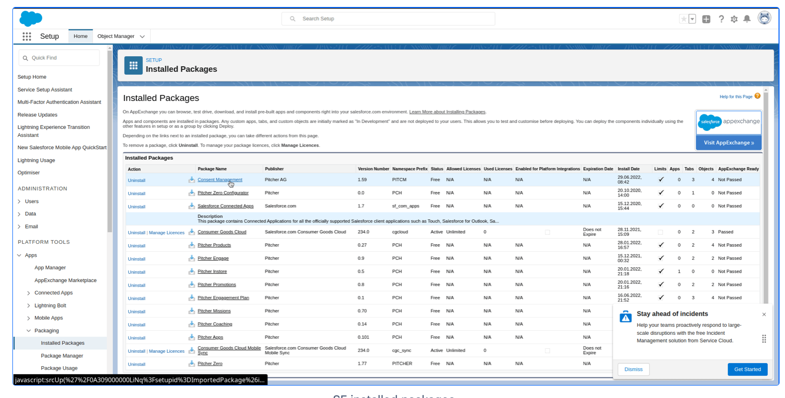 To confirm the successful installation, check the installed packages on the Setup > Apps > Packaging > Installed Packages page.