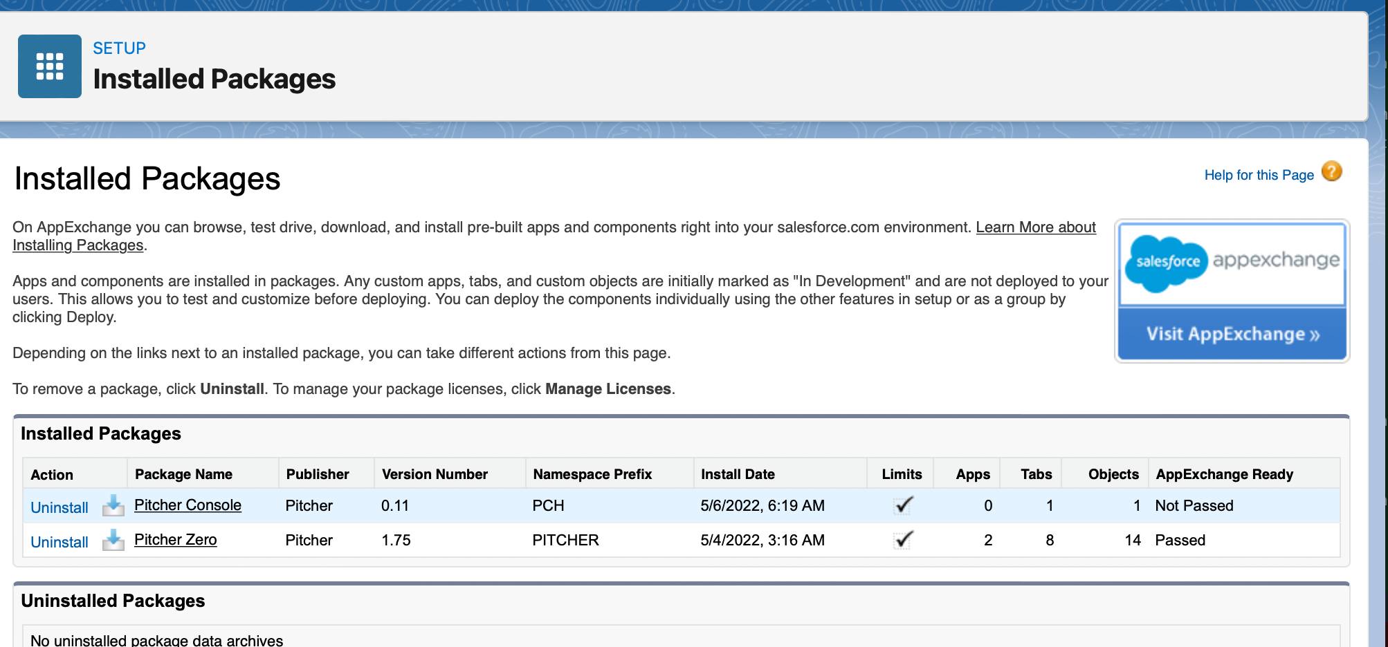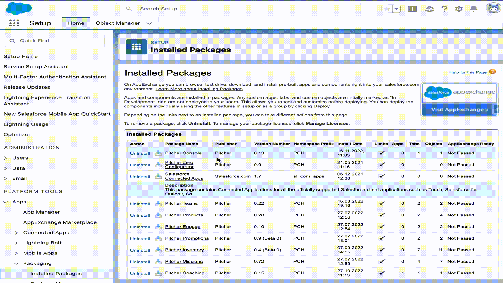 After the Pitcher Apps Managed Package gets installed in the org, you need to perform the following steps: