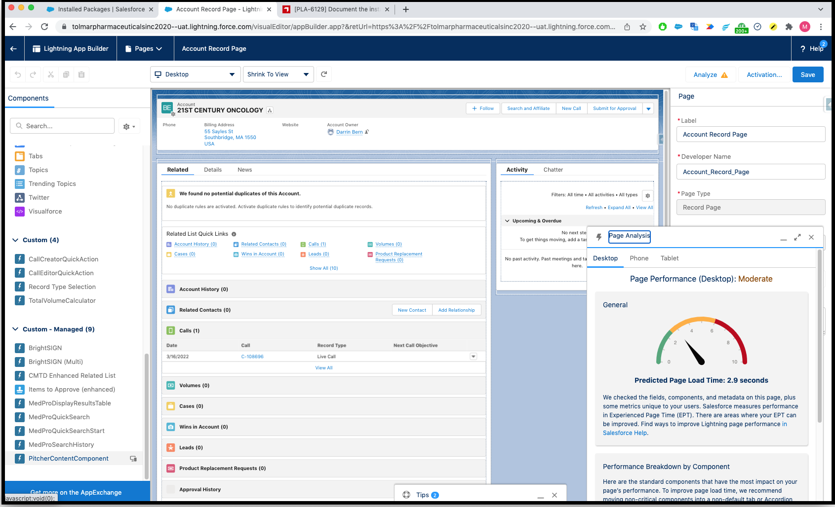 Once added to the page layout, the user can see the Pitcher Content as shown below.