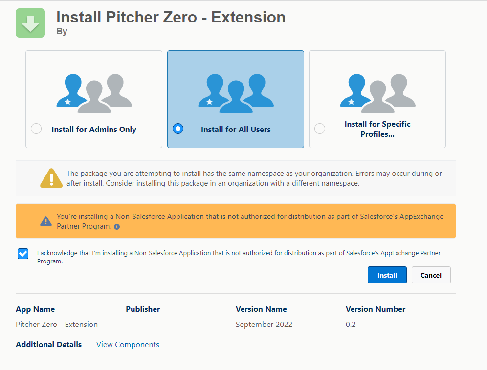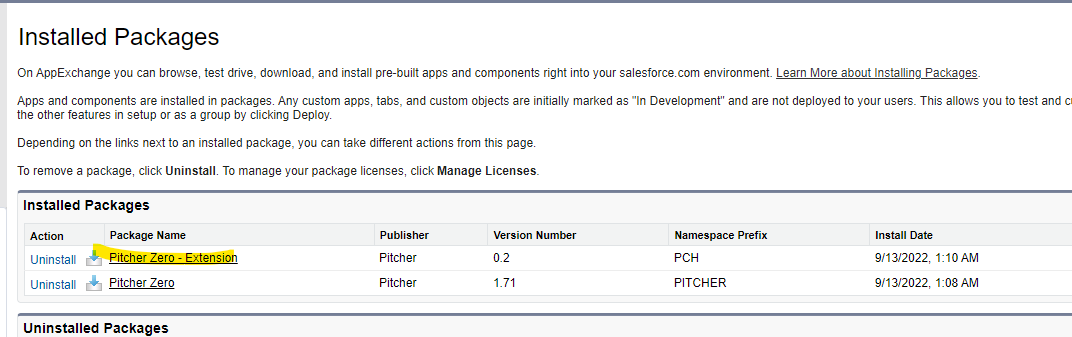 Assign the PITCHER-Zero Extension permission set to users managing this package.