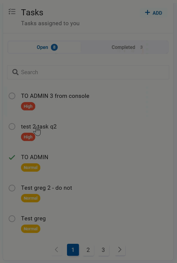 The Tasks card is visible in the territory console and the account console. The Tasks card displays a list of all tasks assigned to the sales rep on the territory console. On the account console, the tasks card shows both the customer account tasks assigned to you and any tasks you might create for a customer account and assign to other users.