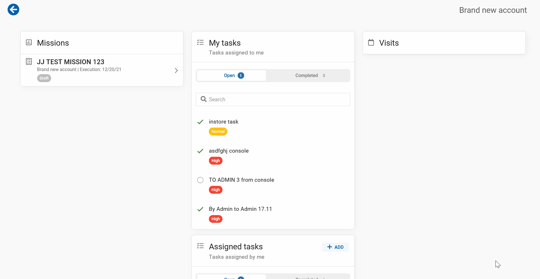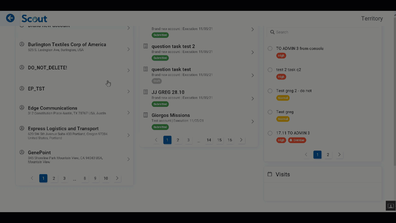For example, You are responsible for customer accounts A, B, and C. So you can see Missions and Visits across all three customer accounts when you visit the territory console.