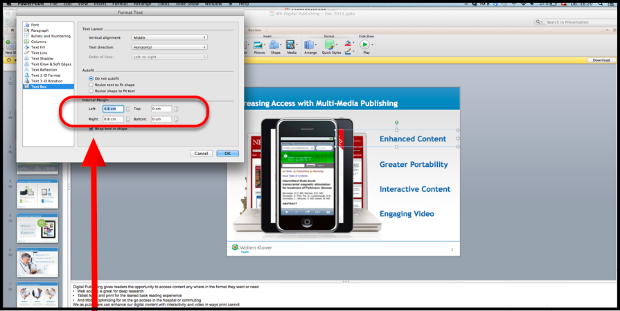 This page gives a walkthrough on how to adjust internal margins and vertical or horizontal text in a presentation.