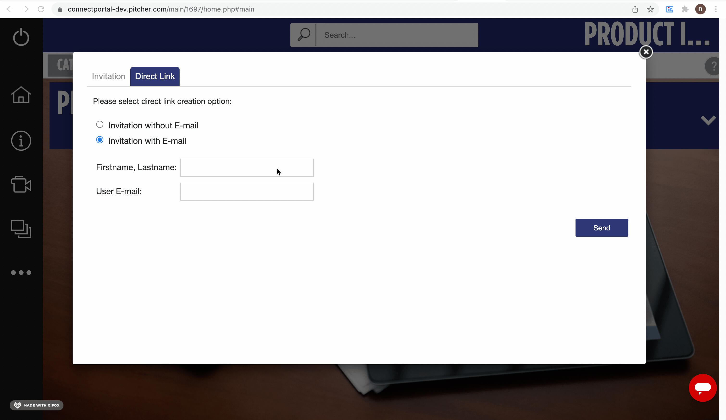 Select Invitation without Email and provide First name and last name. Click on Send.