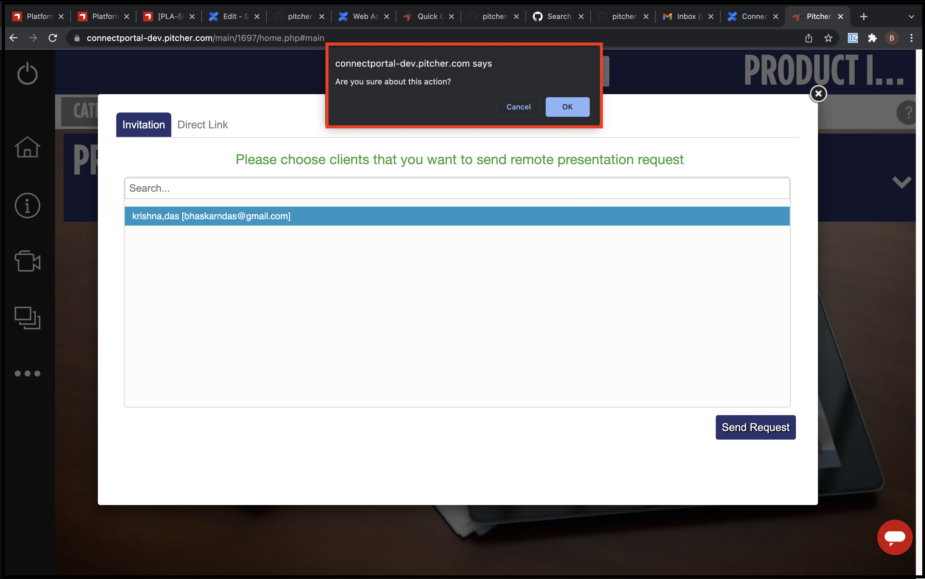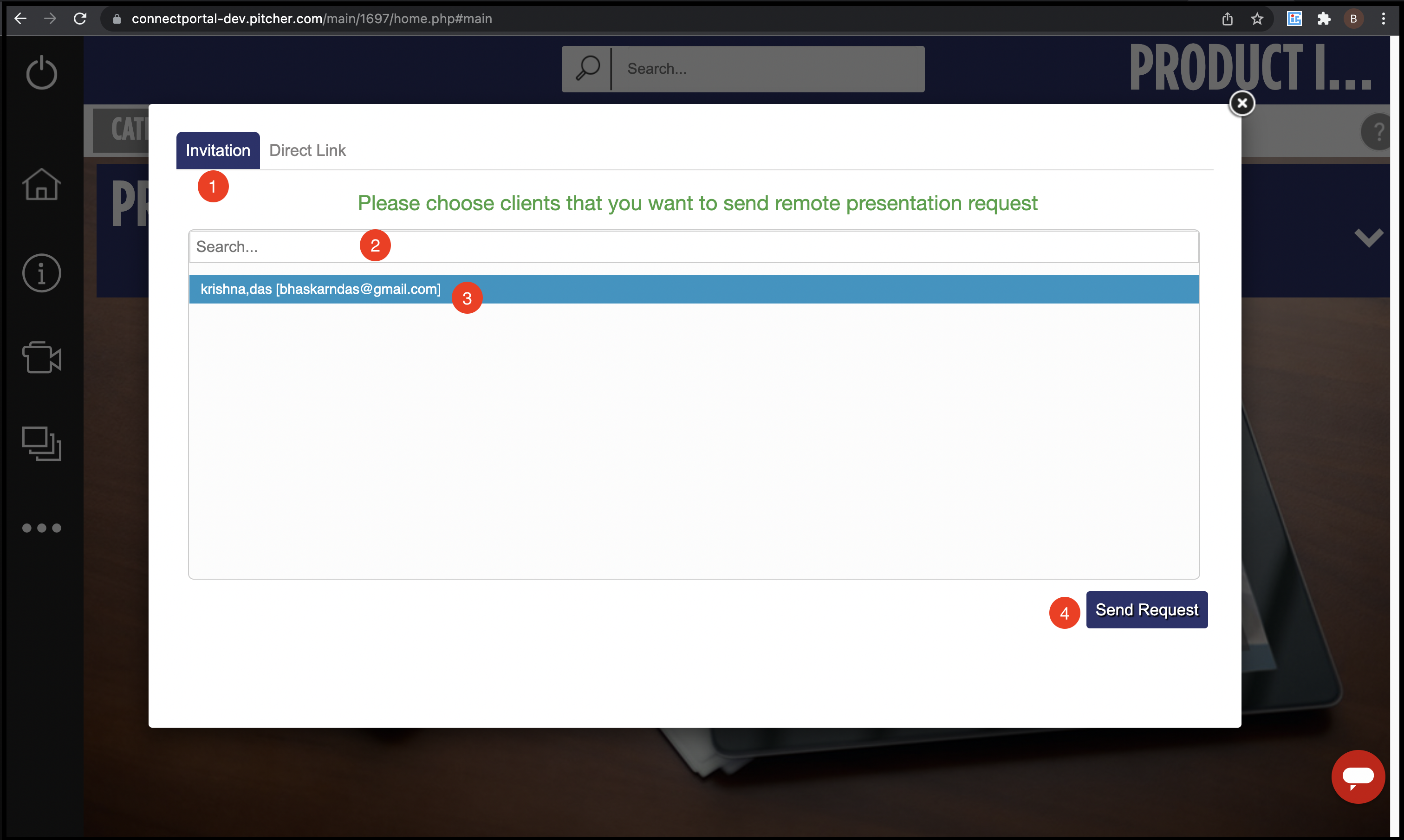 Send Request - Send meeting request to the select customer contact