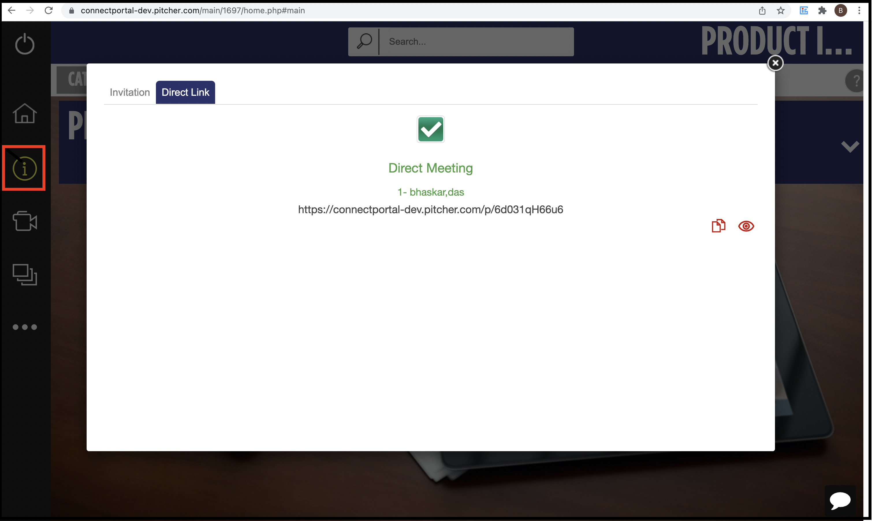 Meeting room link can be copied to the clipboard by clicking on the Sheets symbol.