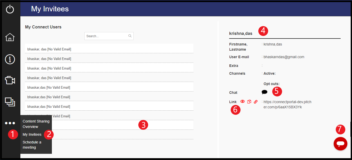 On clicking My Invitees a page with list of invitees will open. Here are the details: