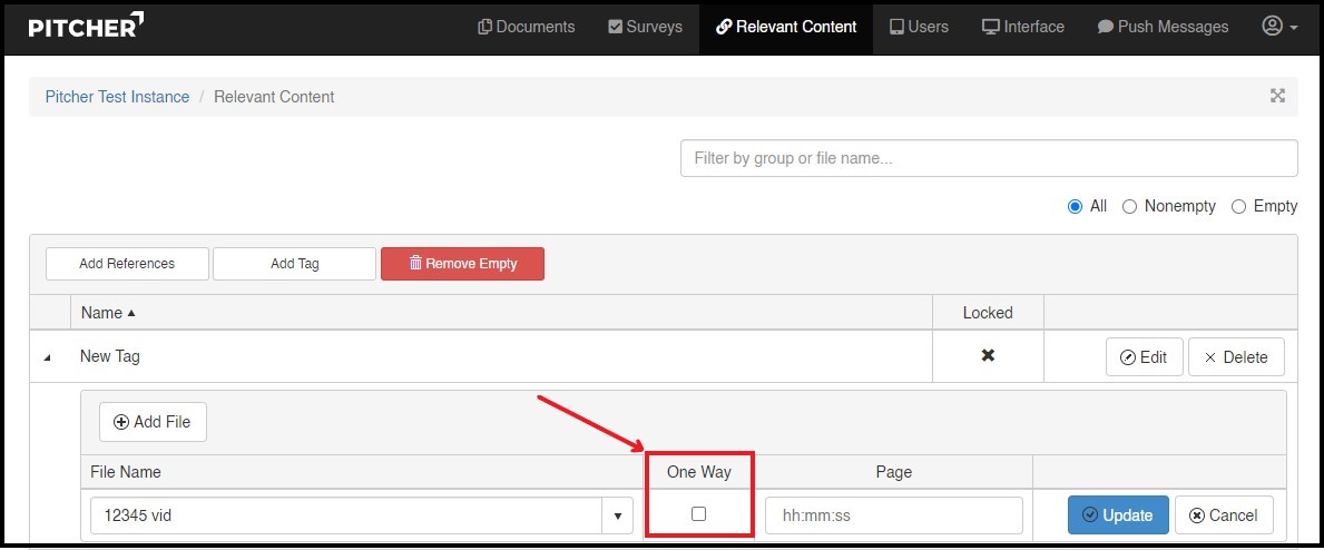 Follow these steps to add One Way Reference to a Tag: