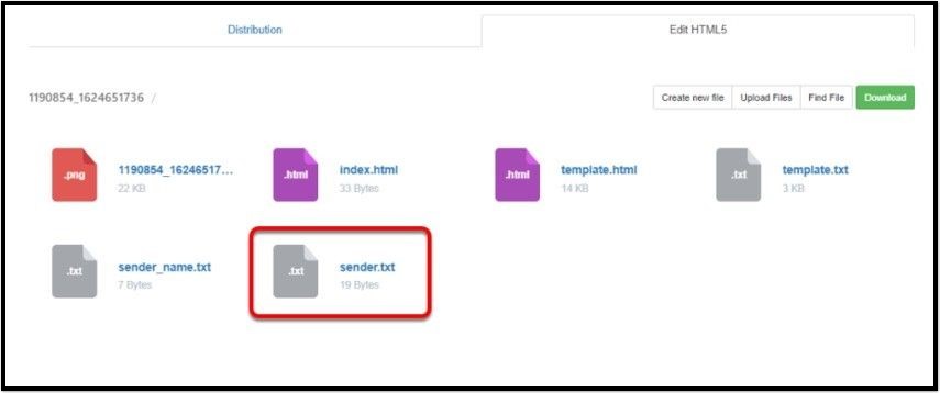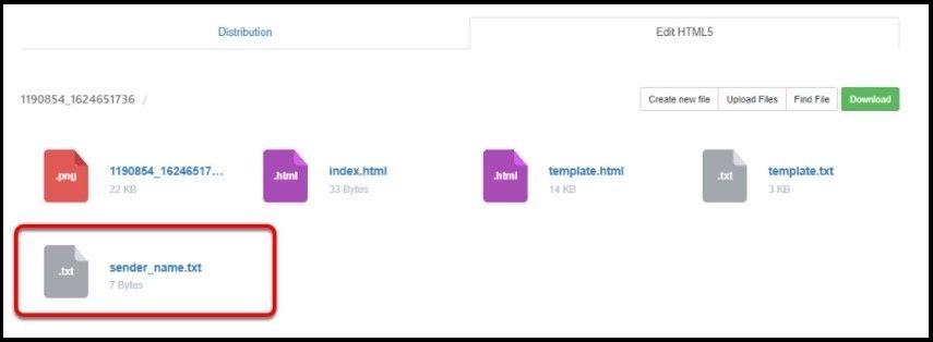 Within the Edit options of the RTE, select "Create new file". Name the file as sender_name.txt.