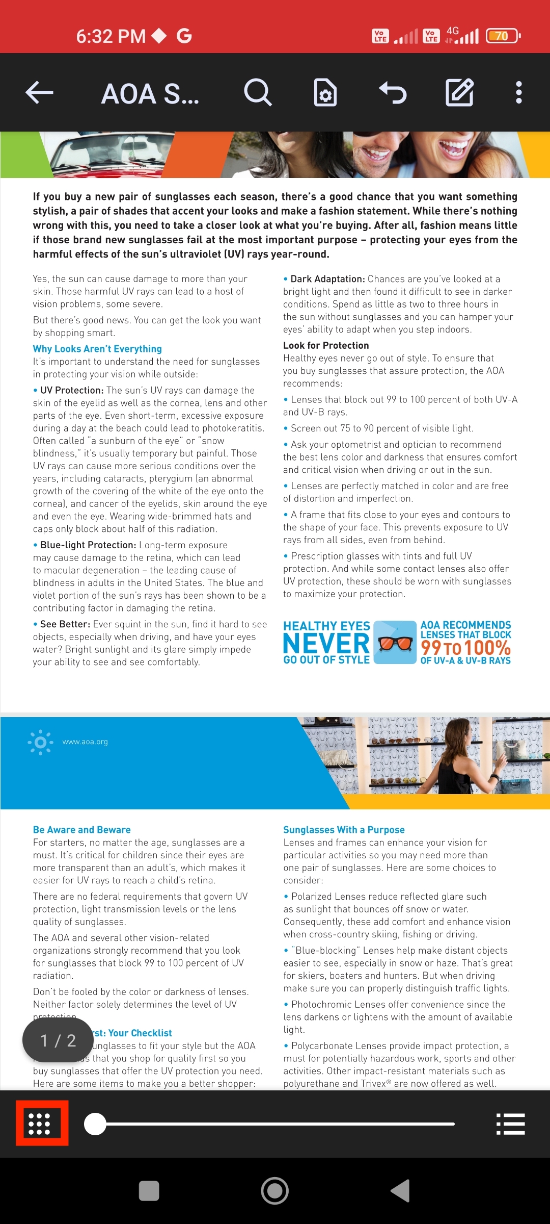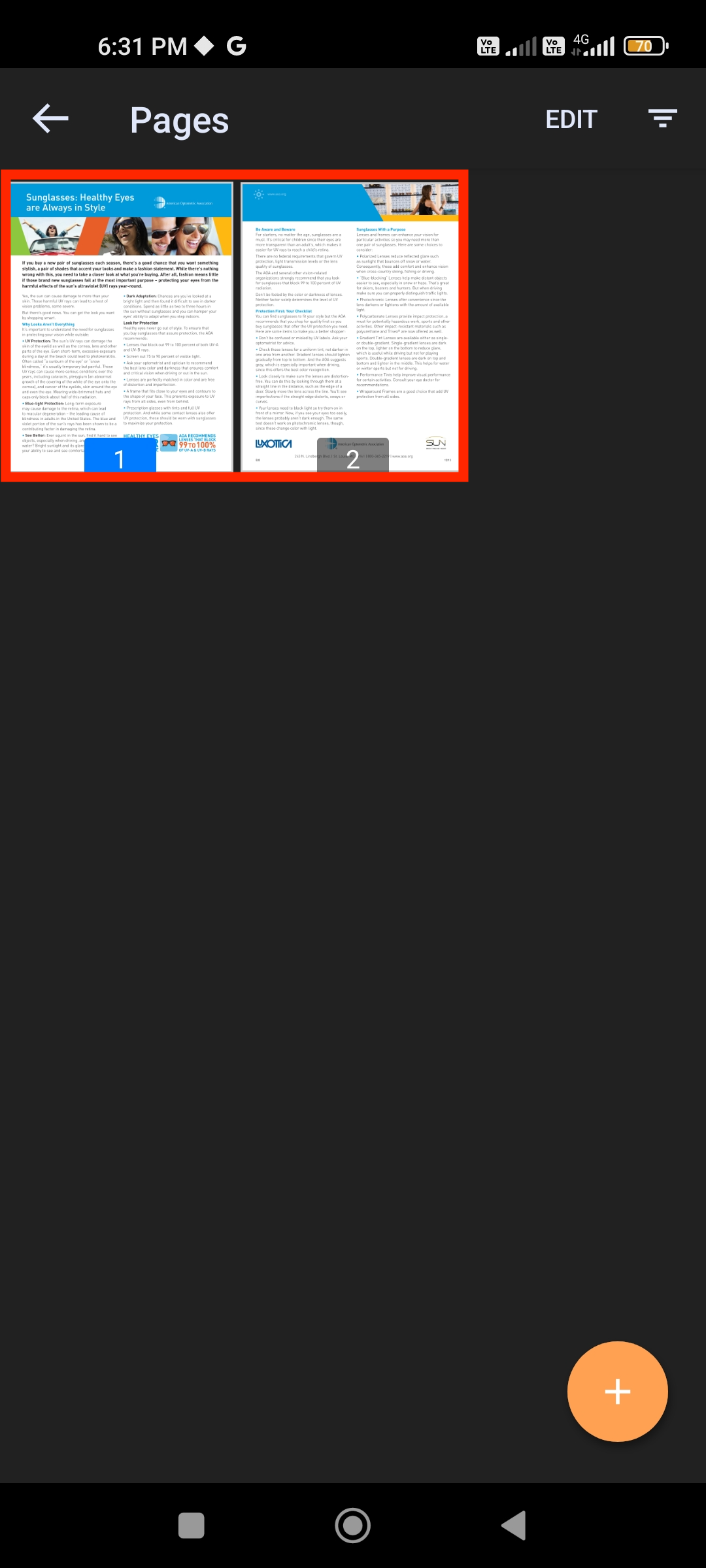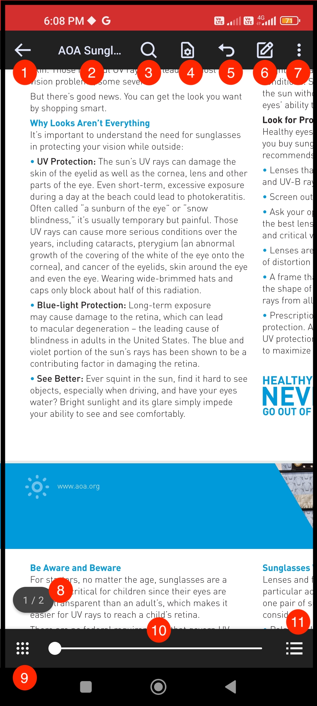 A PDF will be displayed. Tapping anywhere will show various menu options.